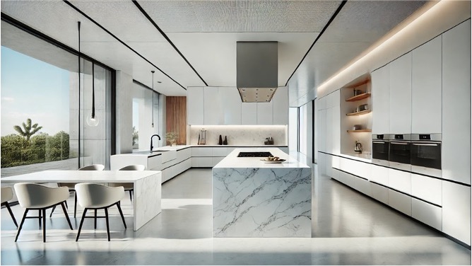 Esta cocina fue fabricada con superficies de Dekton blanco, cortadas con herramientas profesionales para lograr acabados sin despostilladuras ni desperdicios.